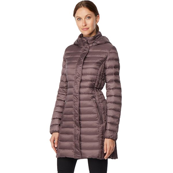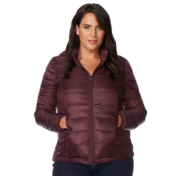 Fashionable and functional this women s heat keep down hooded puffer jacket is sure to keep your warm when the temperatures drop.